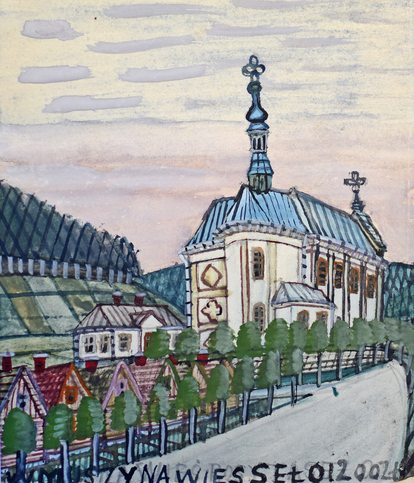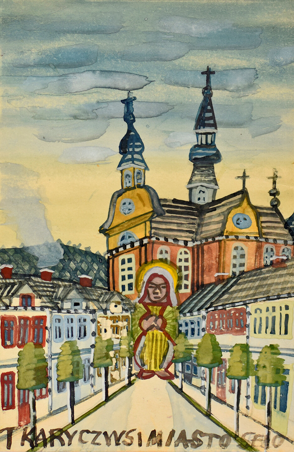 Наголовок: Містецка архітектура з костелом і святым ликом